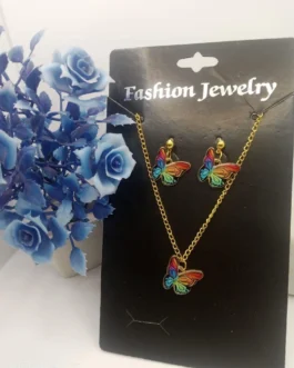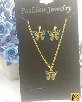 2 Layered Acrylic Plated Rhinestone Butterfly Necklace Set