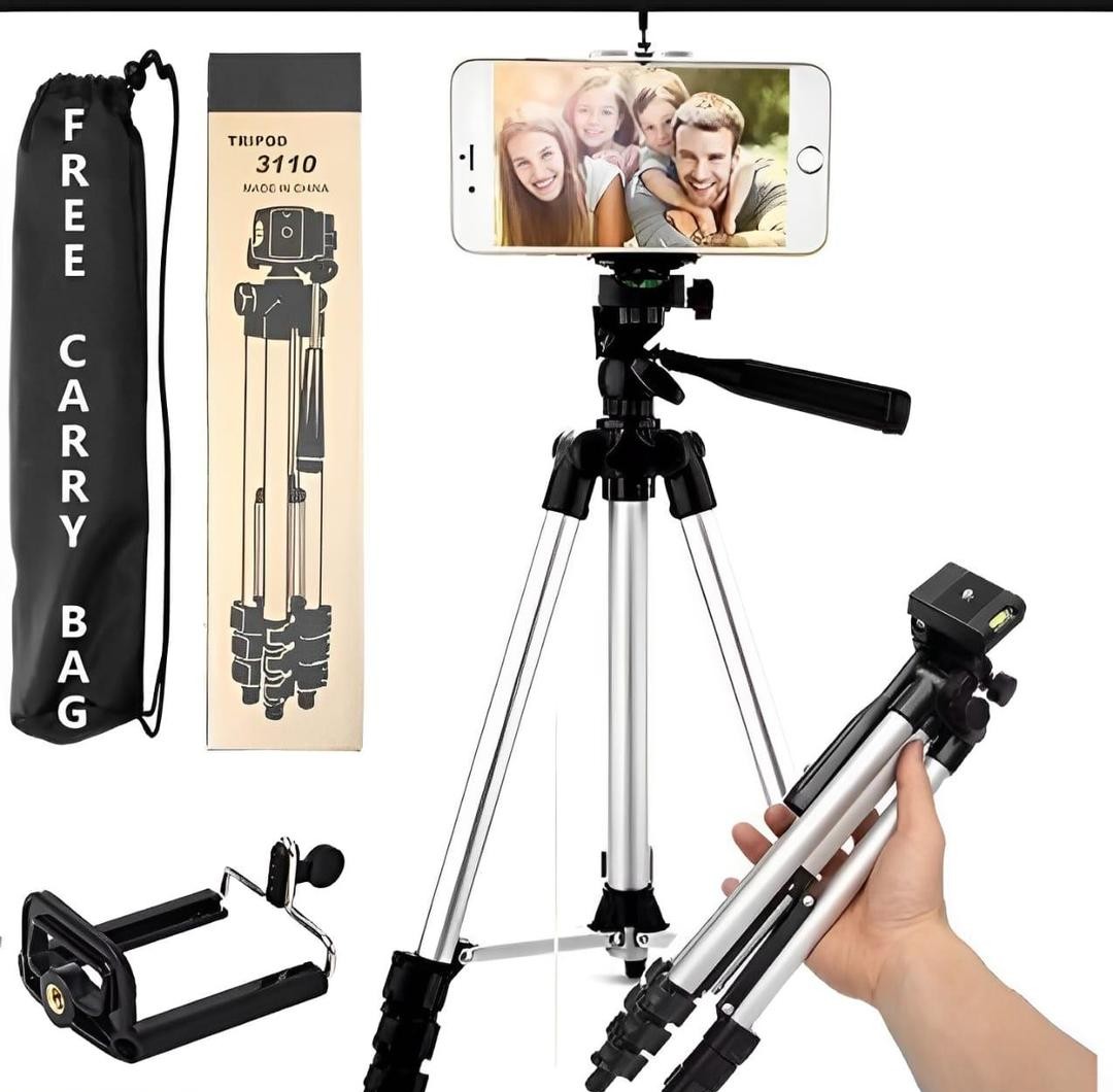 Upgrade your photography with the 3110 Tripod Stand. Featuring a 3.5ft adjustable height and 360-degree rotation, this portable stand is ideal for vloggers and photographers in Pakistan. Because it includes a universal phone holder and a free carry bag, it offers the best value for mobile and camera stability. Buy now for professional-grade results!