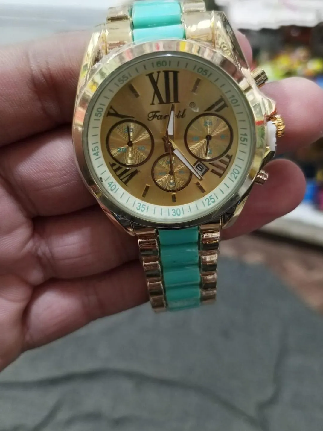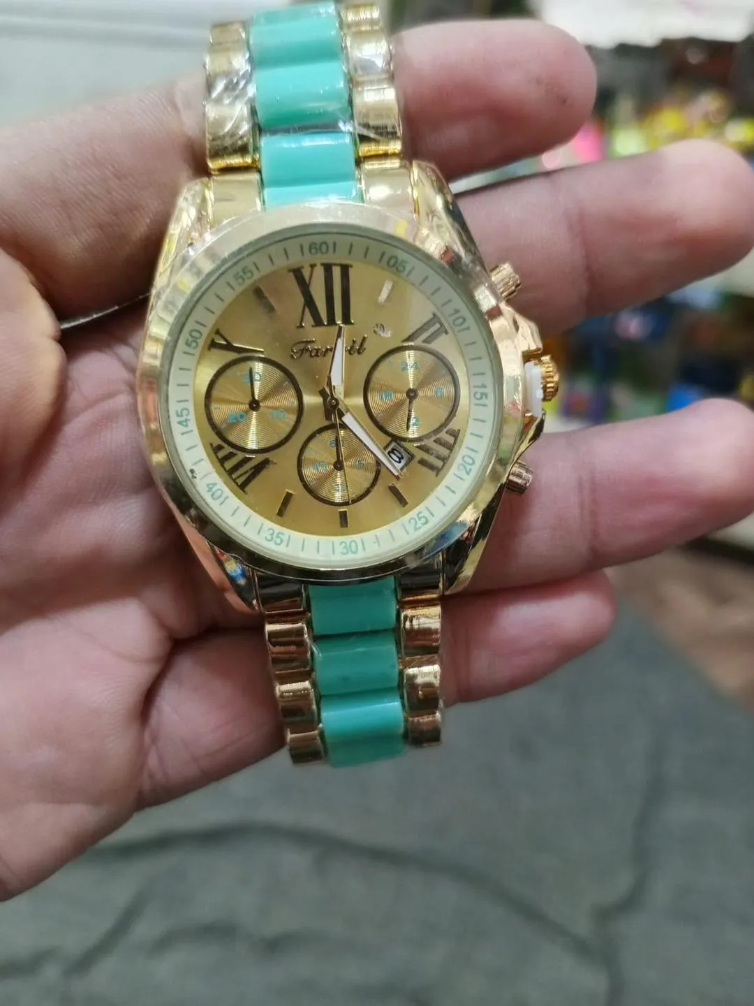In conclusion, this timepiece offers incredible “value for money” and a modern stylish look. Specifically, it pairs perfectly with both formal suits and trendy casual attire. Consequently, it is an essential addition to your personal accessory collection. Therefore, you should upgrade your style today with this stunning gold and turquoise edition