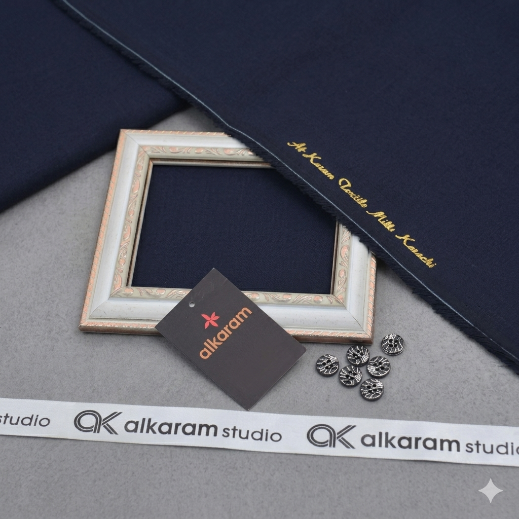 The Men’s Hard Cotton Blue Suit is a premium unstitched ensemble designed for the modern Pakistani man. This 4.5-meter Alkaram fabric offers a crisp, structured finish and superior durability. Perfect for weddings or office wear, it includes 8 high-quality buttons and elegant bag packaging.